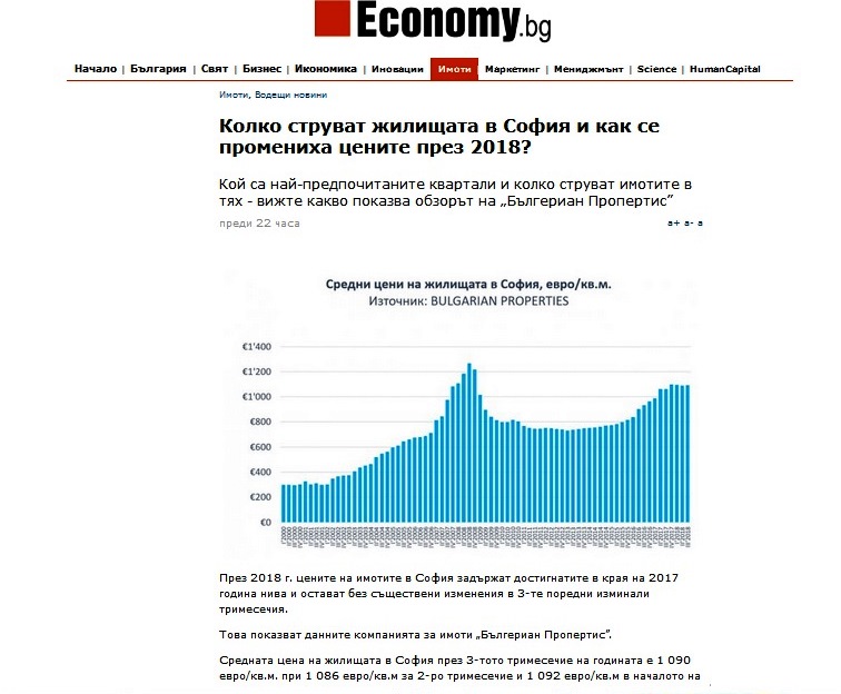 През 2018 г. цените на имотите в София задържат достигнатите в края на 2017 година нива и остават без съществени изменения в 3-те поредни изминали тримесечия.