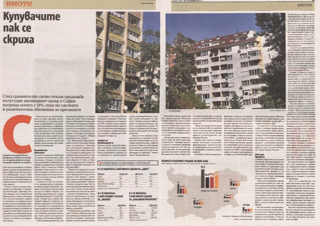 За приключване на годината с 5-6% намаление в цените на софийските имоти говорят и от "Адрес", също с уточнението, че всичко зависи от потенциала на европейските икономики да се справят с дълговите проблеми.