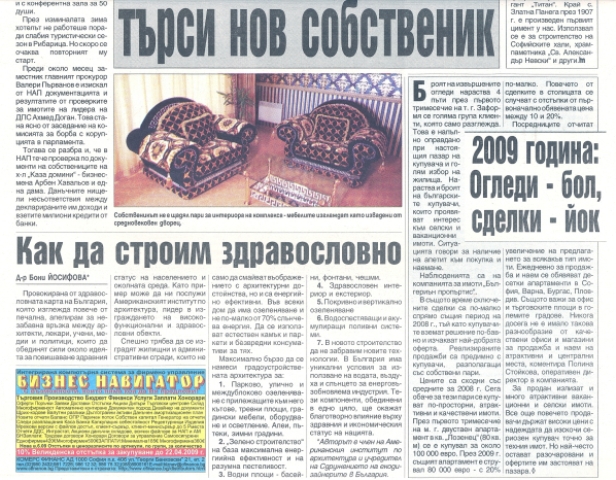 Броят на извършените огледи нараства 4 пъти през първото тримесечие на т. г. Заформя се голяма група клиенти, която само разглежда. Това е напълно оправдано при настоящия пазар на купувача и голям избор на жилища. Нараства и броят на българските купувачи, които проявяват интерес към селски и ваканционни имоти. Ситуацията говори за наличие на апетит към покупка и наемане.