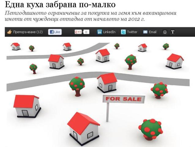 Формално тази забрана отпадна в началото на 2012 г. и това като цяло е добра новина за имотния пазар. Има обаче и юристи, които смятат, че ограничението не е действало от самото начало заради разлики в законите. Така хилядите фирми на британци и ирландци за покупка на имоти в България може да са били само излишен разход. И в крайна сметка ненужна бариера пред пазара години наред.