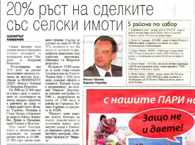 „Ниските цени карат все повече българи да търсят спокойствието и по-евтиния живот, като закупят къщи в близост до градската среда на областните центрове”, обясняват брокери от „Мирела”.