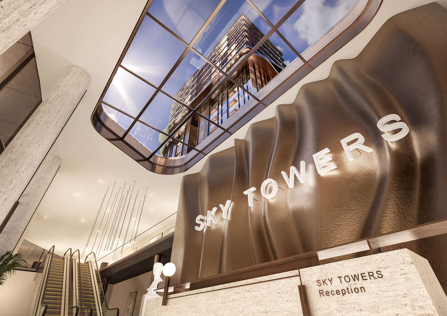 Sky Towers обединява две високи сгради, ориентирани една към друга, които създават характерен силует. Архитектурната концепция е вдъхновена от локацията – мястото, където градът среща планината. Вертикалните елементи символизират динамичния силует на София, докато хоризонталните и плавно извиващи се линии препращат към релефа на Витоша.
