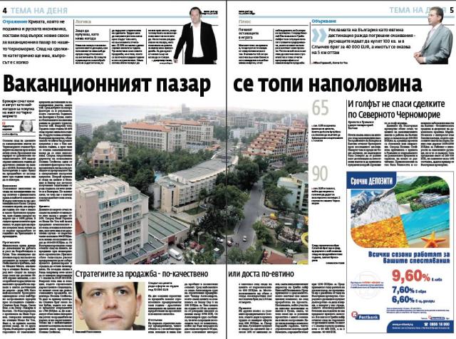Осезаем спад на сделките за ваканционни имоти по Черноморието очакват брокерите на имоти през новия летен сезон. Прогнозите им варират от сравнително оптимистичните 20% надолу спрямо миналата година до драстично свиване на пазара с 40-50%. Всички обаче са категорични в едно: бумът на продажбите от последните три години няма как да се повтори.