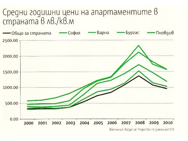 Брокери отчитат, че пазарът се е стабилизирал и спадът е спрял. Немалка роля в задържането на цените на жилищата играят и банките. Наред с отпусканите все по-изгодни кредити (рекламират с лихва от 6.1%) финансовите институции се въздържаха да наводнят пазара с необслужвани ипотеки, посочи Полина Стойкова, оперативен директор на „Бългериан Пропертис“. „В момента ситуацията се характеризира по-скоро със задържане на нивата, а някои имоти дори отчетоха лек ръст“, каза Теодора Димитрова, изпълнителен директор на българския офис на ERA. „Смятаме, че цените са достигнали най-ниските си нива и при нормално развитие на икономиката и сравнително бързо излизане от икономическата криза не би трябвало да има сериозно понижение“, смята Цветелина Тасева, изпълнителен директор на „Адрес“. От началото на годината сделките стават на нива от 700-900 евро/кв.м, показват данните на агенцията за недвижими имоти „Явлена“.