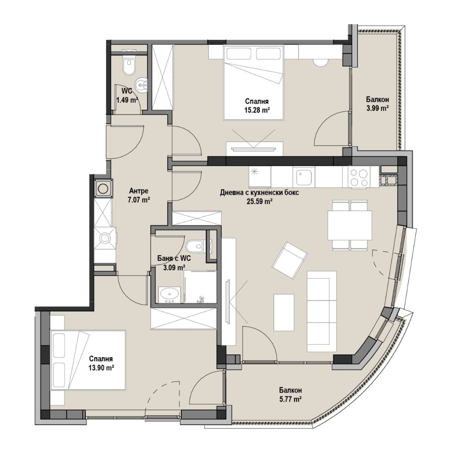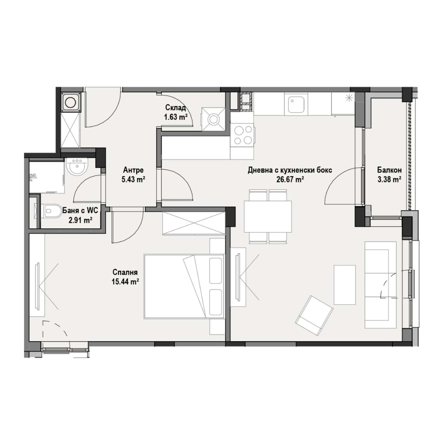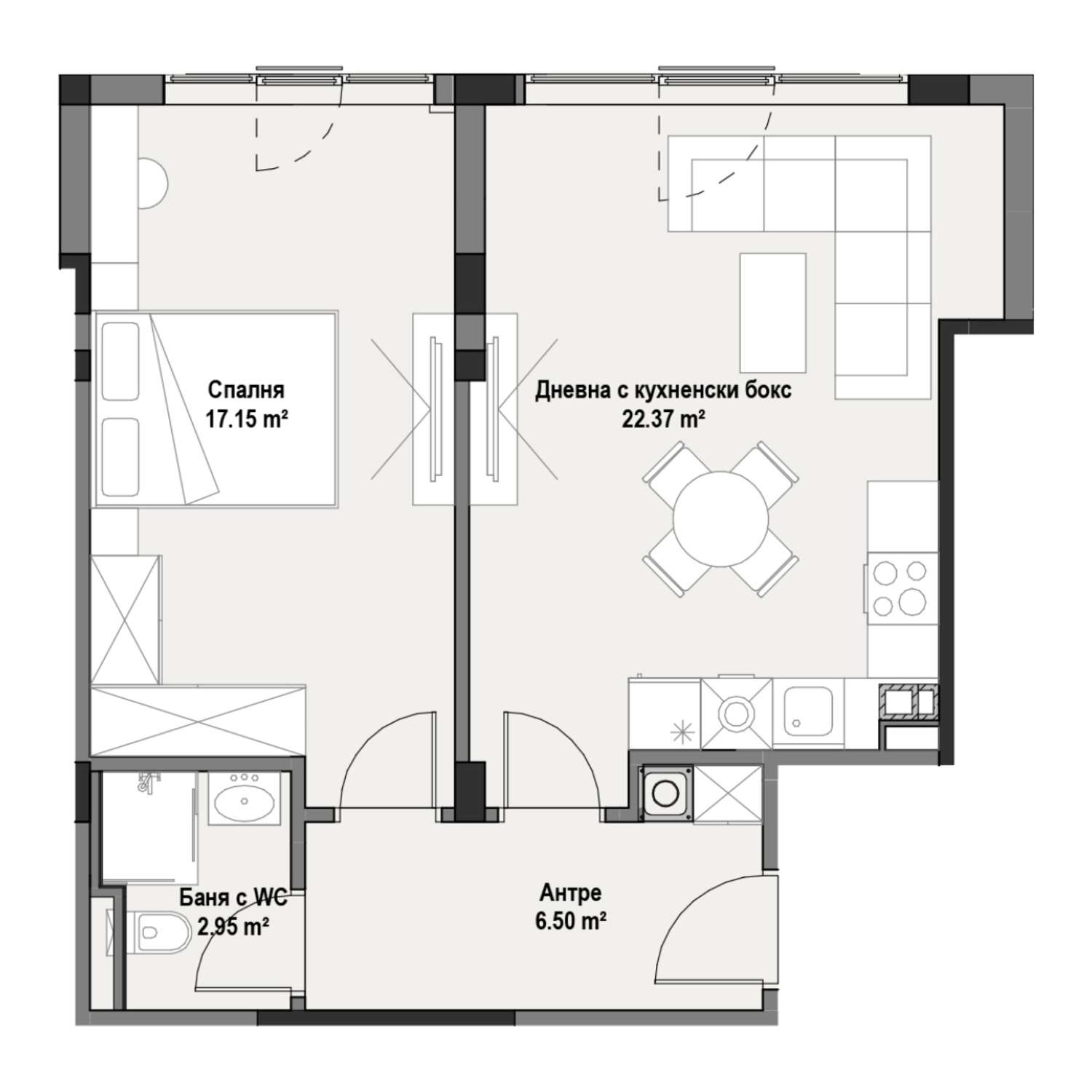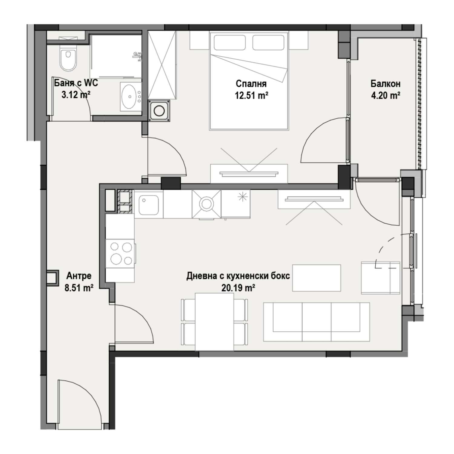 Изберете своя нов дом в южната част на София, разположен в район с ниско застрояване и усещане за простор. Сградата е с издаден Акт 14, което гарантира сигурност за бъдещите собственици и инвеститори. Големите прозорци и озеленените външни пространства създават светла и спокойна