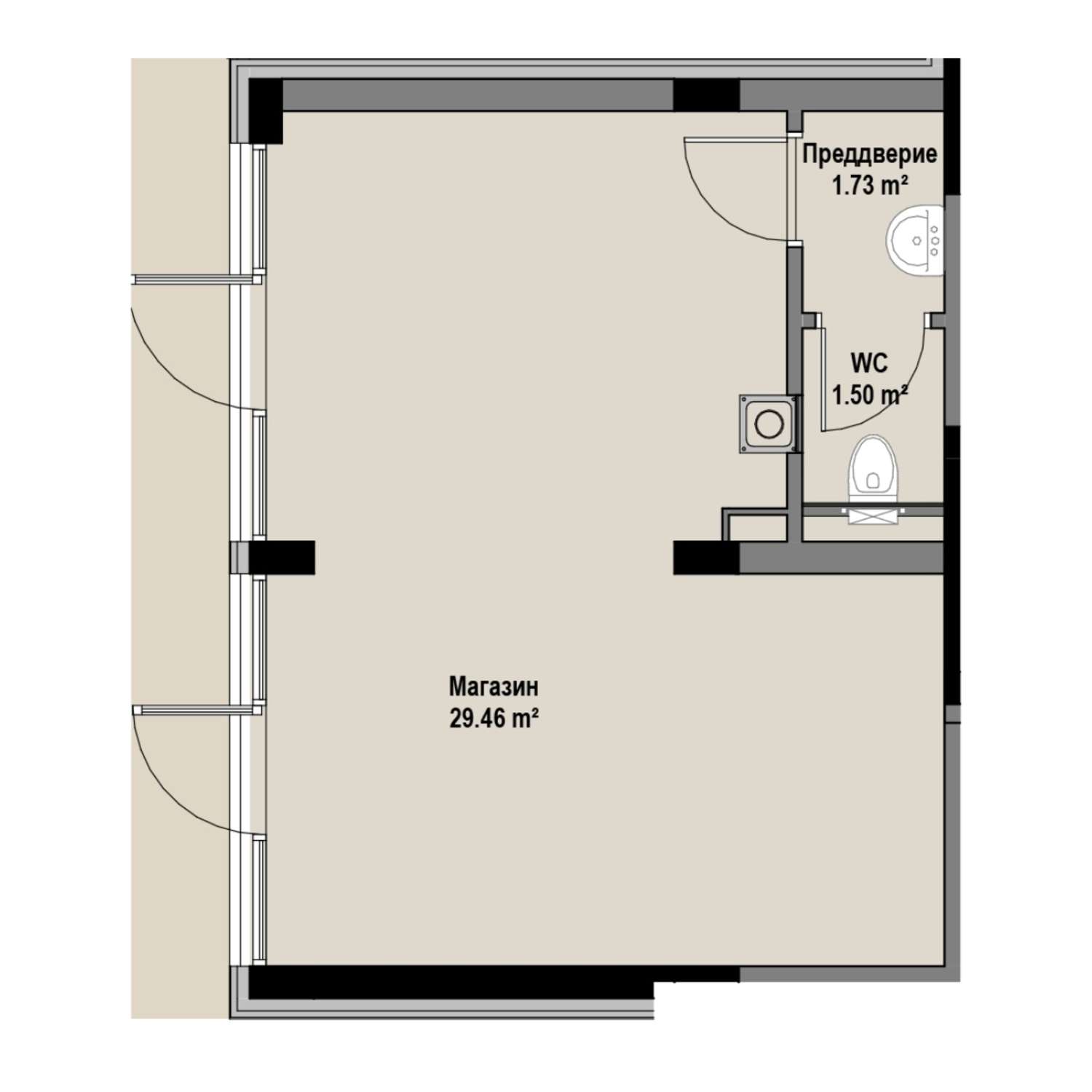Магазин в Модерен жилищен комплекс с Акт 14 в кв. Витоша