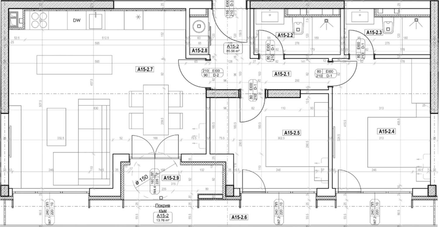 (1 489 €/м2) (2 912,23 лв./м2)Площ: 152.36 м2 Етаж: 15