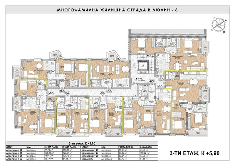 (2 050 €/м2) (4 009,45 лв./м2)Площ: 113.11 м2 Етаж: 3