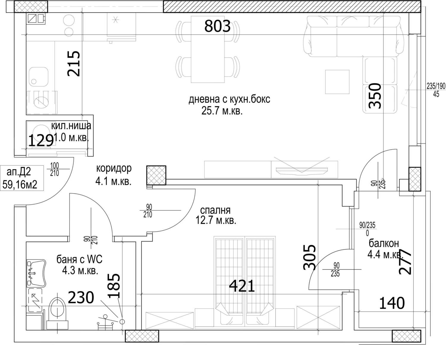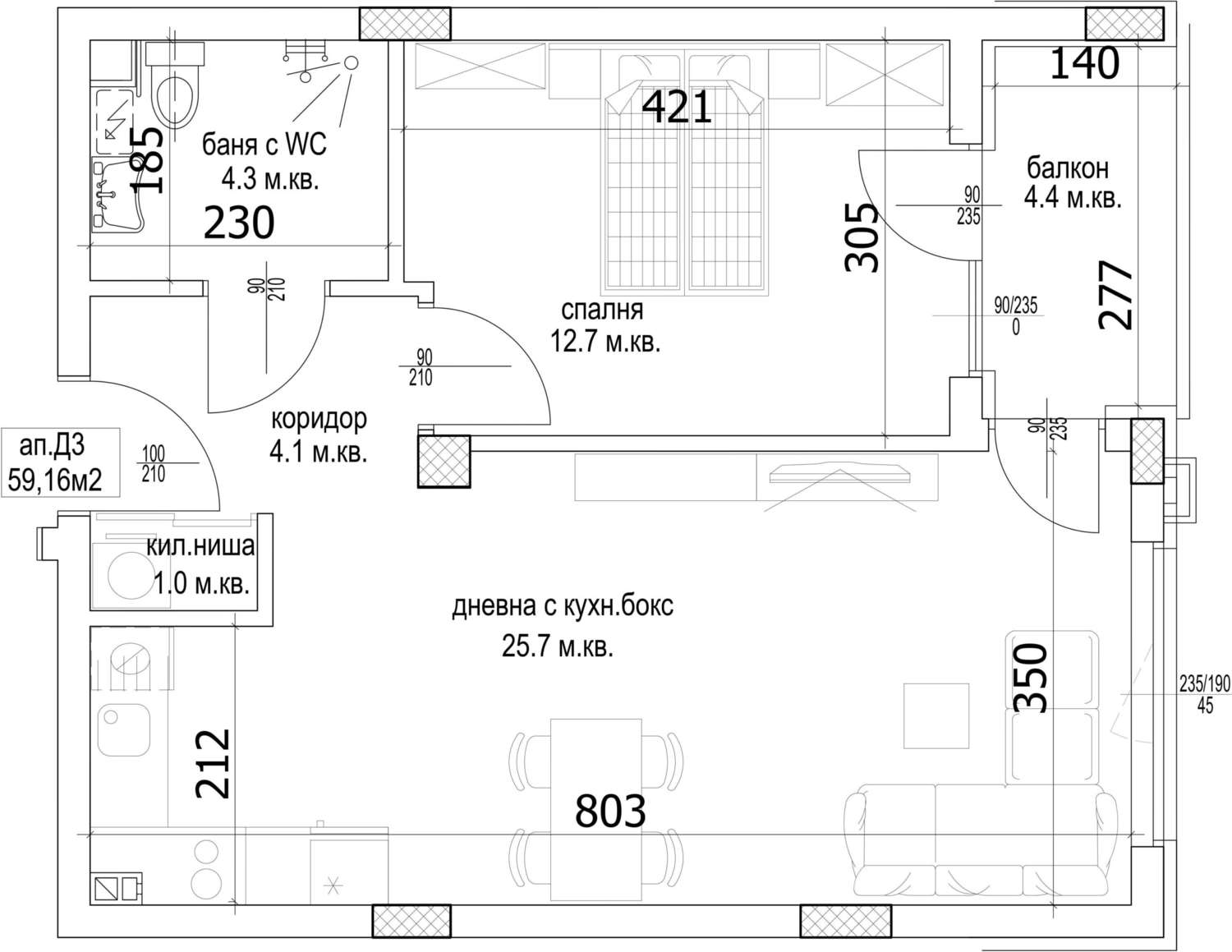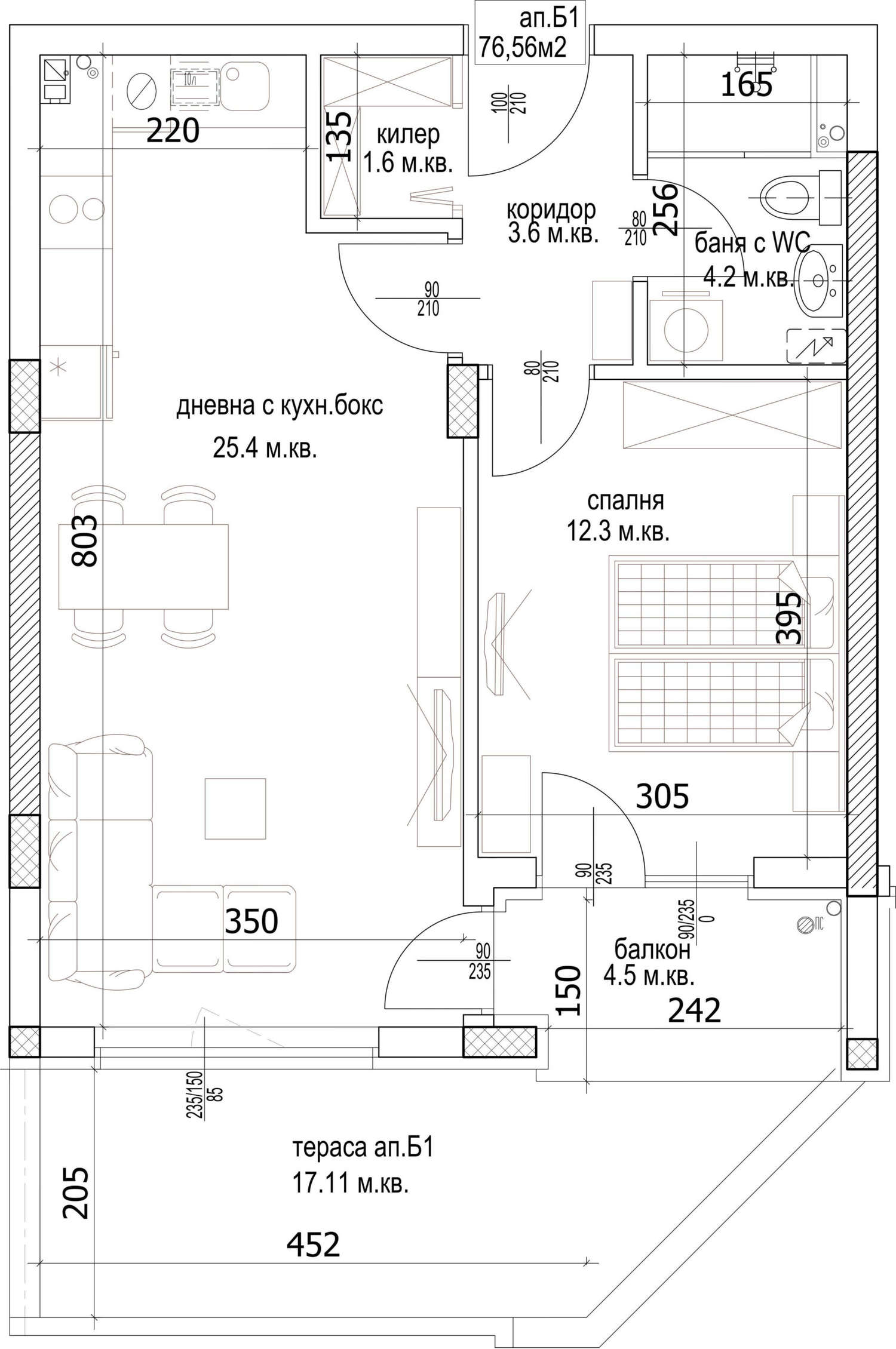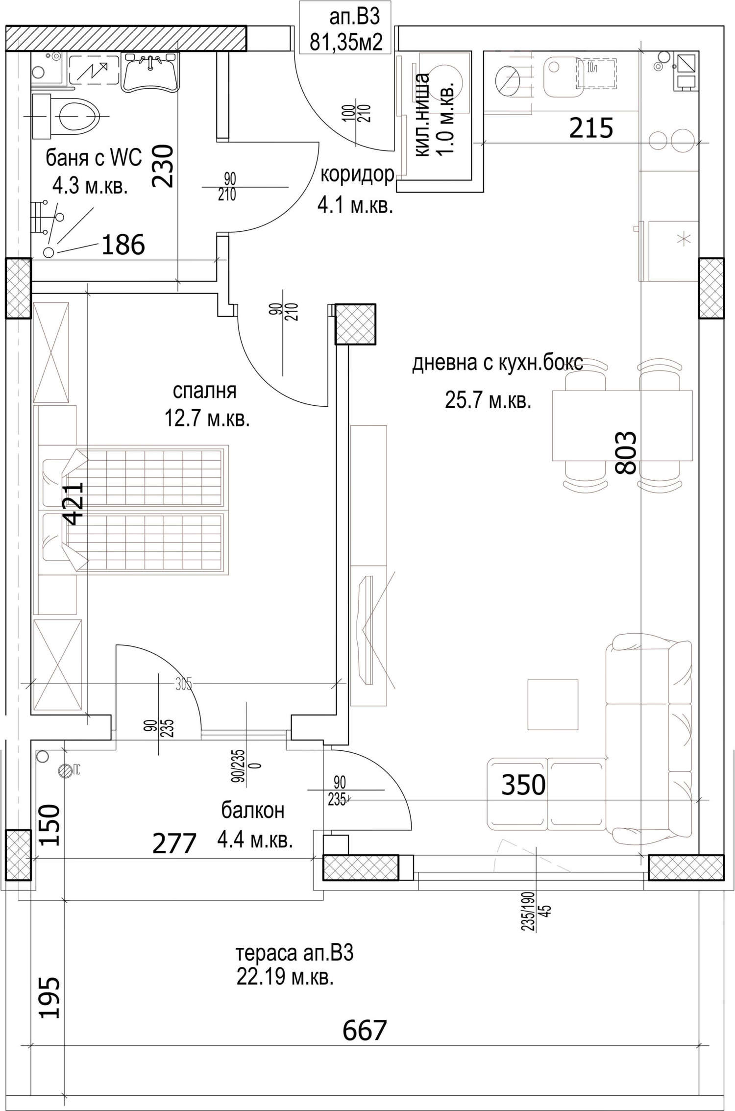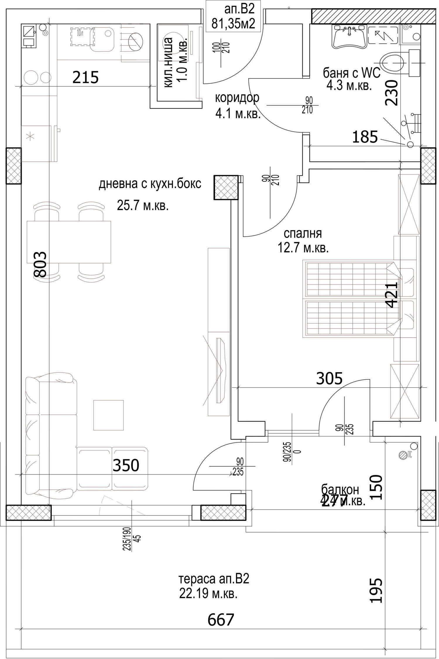 (1 321 €/м2) (2 583,65 лв./м2)Площ: 82.11 м2 Етаж: 2