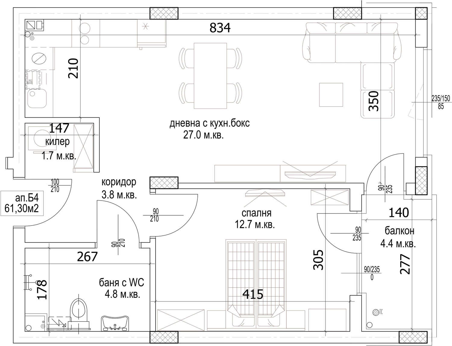 Предлагаме за продажба разнообразие от функционално разпределени апартаменти в нов мащабен проект на доказала се фирма в кв. Кайсиева градина. Отличава се с подчертана градска визия и естетично балансирана фасада, разнообразие в цветовите елементи и функционално разпределение на