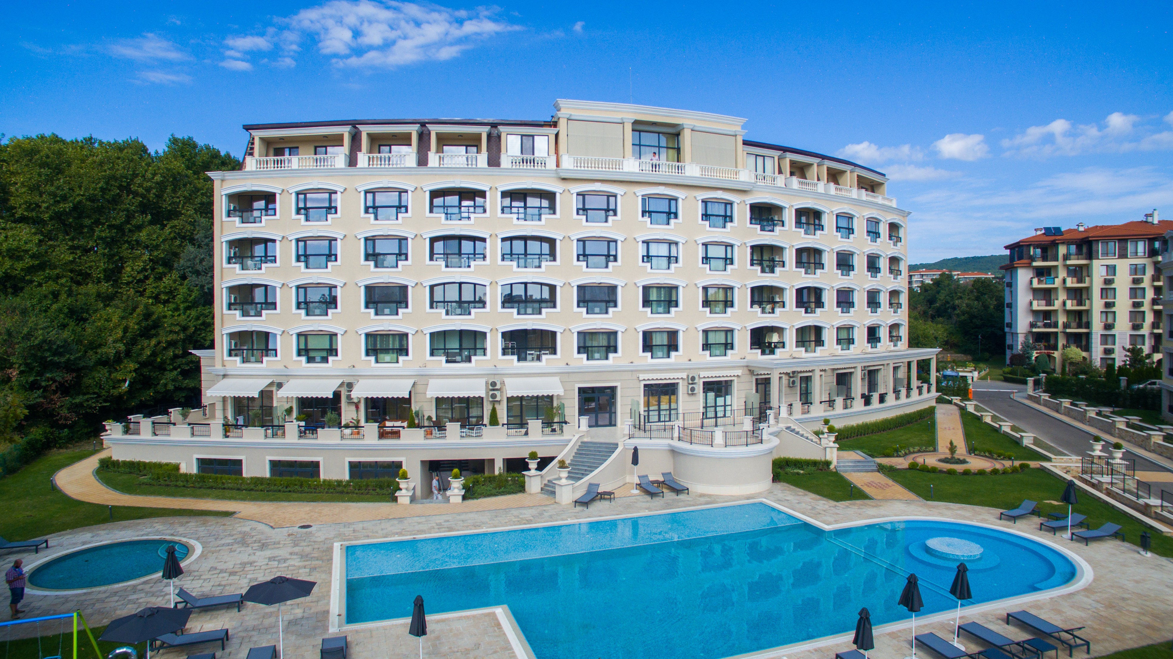 Едно от топ предложенията тук е комплекс, който се състои от пет сгради със студия, двустайни и тристайни апартаменти, а за пълноценната почивка е предвиден открит басейн, градина и зона за отдих, СПА комплекс, ресторант, магазин, детски кът и паркинг места. Всяка от луксозно завършените сгради предлага завършени до ключ, с естествени материали (паркет и камък), жилища, с поставени климатици във всяка стая.