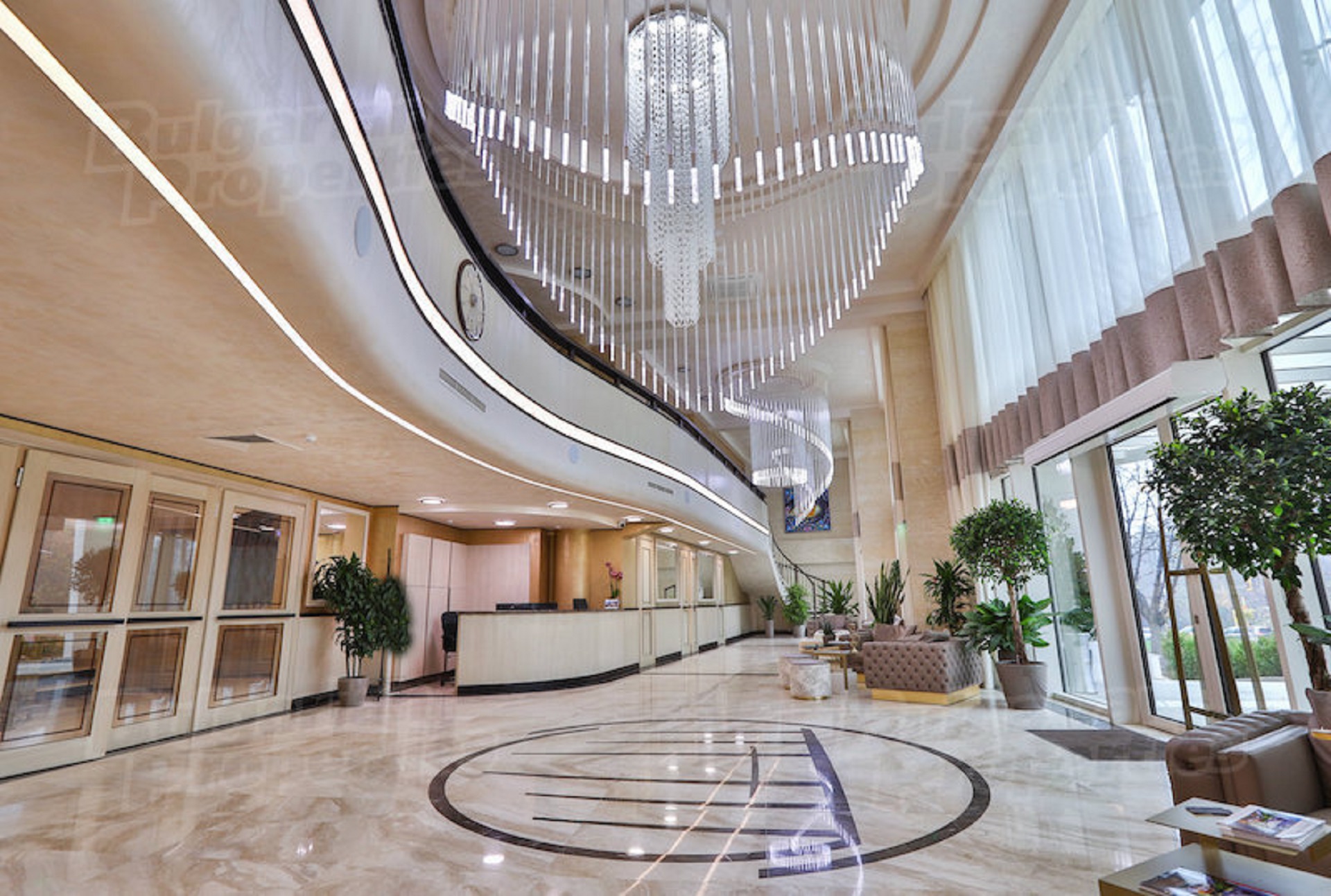 На представителния партер се намира голямо луксозно фоайе, облицовано с най-висок клас гранит и оникс, с двойна височина и обходна панорамна галерия на второто ниво.