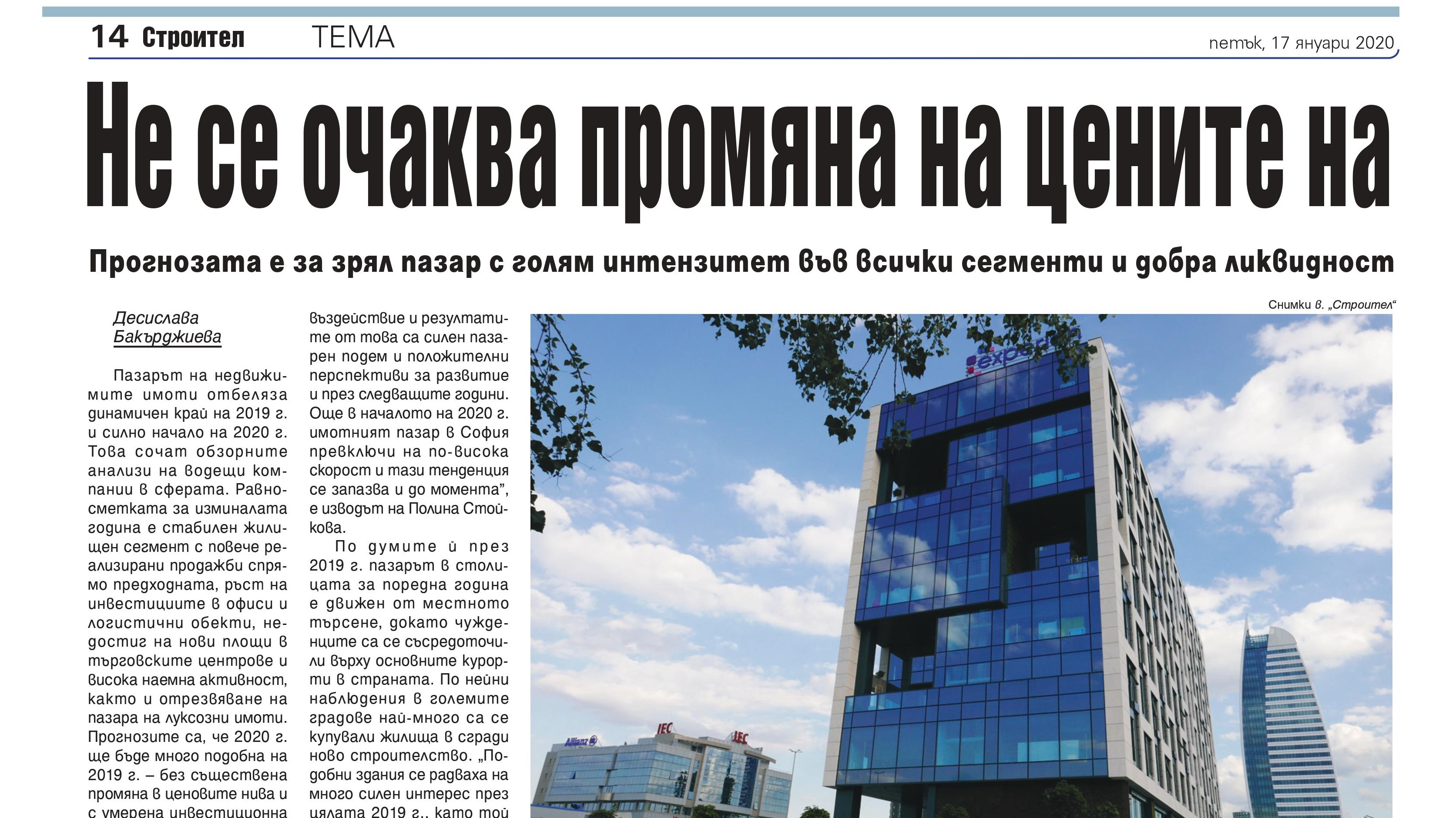 Не се очаква промяна на цените на недвижимите имоти през 2020 г.