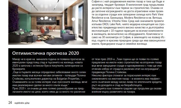 Макар че в края на миналата година се появиха прогнози за евентуален предстоящ спад в търсенето на жилища, новата 2020-а започна с истински бум в покупките, категорични са брокерите. "Още в първите месеци определено забелязваме много силен имотен пазар във всички негови сегменти - потвърди Полина Стойкова, изпълнителен директор на Bulgarian Properties. - Очакванията са за голям интерес към луксозните жилища, вече има реализирани сделки за много скъпи къщи." През 2020 г. се очаква да има голямо разнообразие на предлаганите имоти на цени, които няма да са много по-различни от тези през 2019-а. "Тази година ще се появи по-голямо предлагане на имоти ново строителство на вторичен пазар във вече завършени сгради и едновременно с това ще има отличен избор от сгради в различен етап на изграждане", предвижда Полина Стойкова.