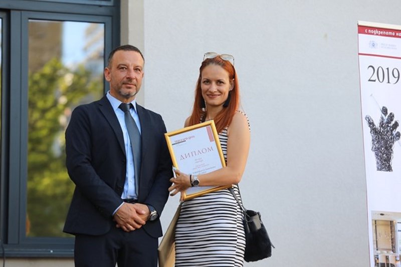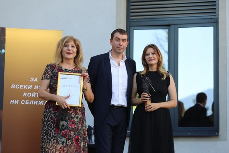 Директорът „Реклама –външни комуникации” на „Медийна група България” Преслава Паунова награждава арх. Ивета Попова