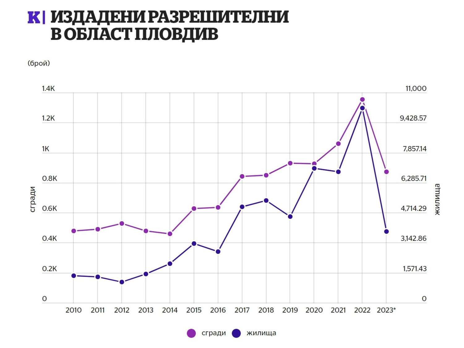 - През 2022 г. област Пловдив постига рекорди в броя на строителните разрешителни и започнатите нови жилищни сгради;
