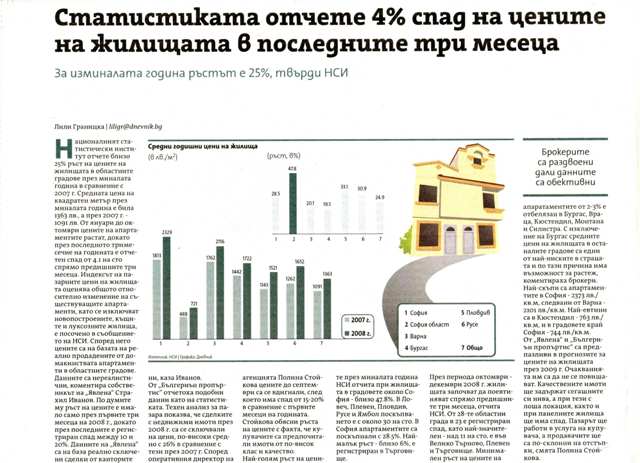 НСИ обяви официалният ръст на цените на имотите за 2008 г. Годишният анализ на БЪЛГЕРИАН ПРОПЕРТИС сочи сходни данни