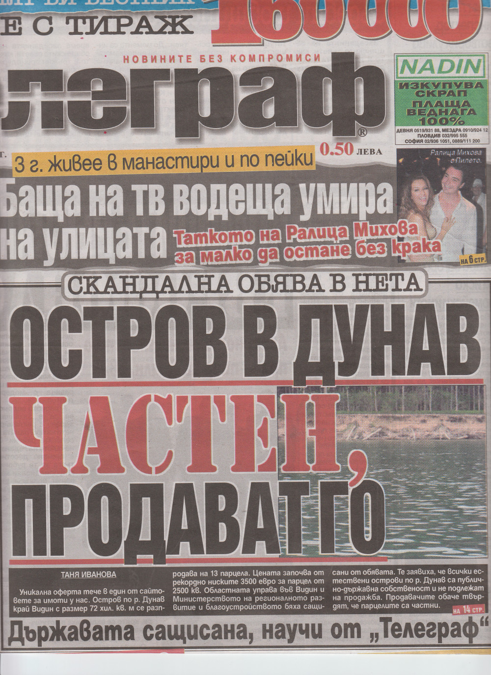 На 20.08.2010 г. във в-к "Телеграф" излезе публикация със заглавие "Остров в Дунав частен, продават го", която касае имот предлаган от нашата компания за продажба. Можете да видите обявата за продажба на този имоти тук.