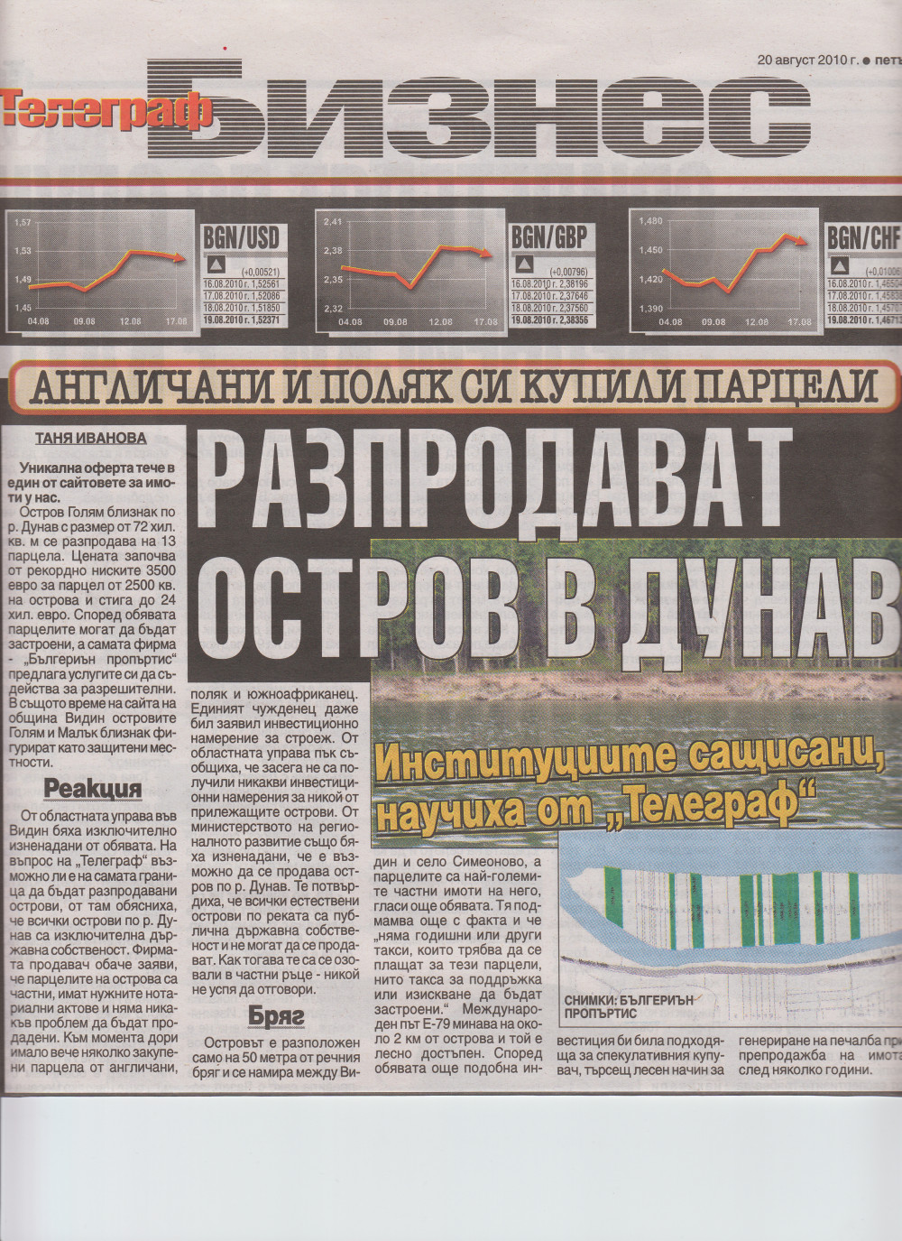 Информация за остров в р. Дунав за продажба във връзка с публикация във в-к "Телеграф" от 20.08.2010 г.