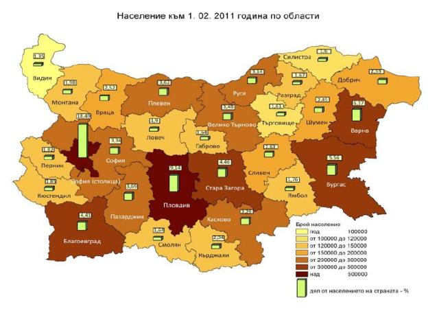 Експресните данни на НСИ сочат, че 73% от населението в България живее в градовете, а 27% - в селата. През последните 10 години населението на България бележи спад с малко над 580 000 души или около -7%. Именно в областните градове се сключват между 55 и 60% от общия брой продажби на недвижими имоти в България през последните години по данни на Агенцията по вписванията, изведени от BULGARIAN PROPERTIES.