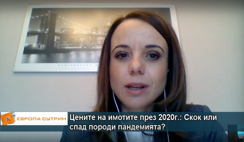 Изпълнителният директор на BULGARIAN PROPERTIES Полина Стойкова беше гост на сутрешния блок на ТВ Европа "Европа сутрин" в събота, 23.01.2021 г., за да коментира тенденциите на жилищния пазар в България.