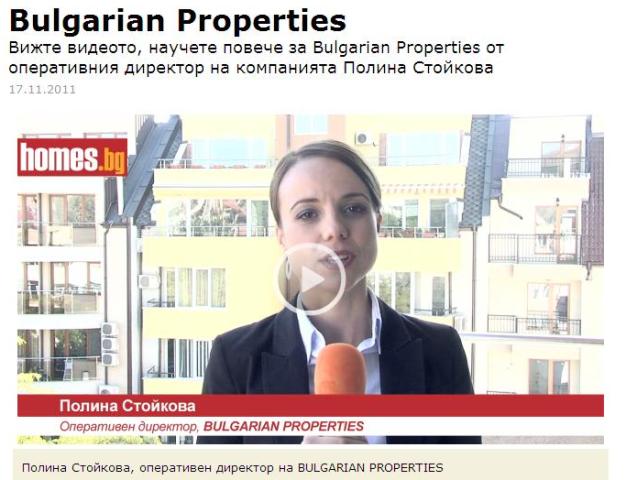 Полина Стойкова - Оперативен директор на BULGARIAN PROPERTIES - представя компанията за специализирания портал homes.bg.