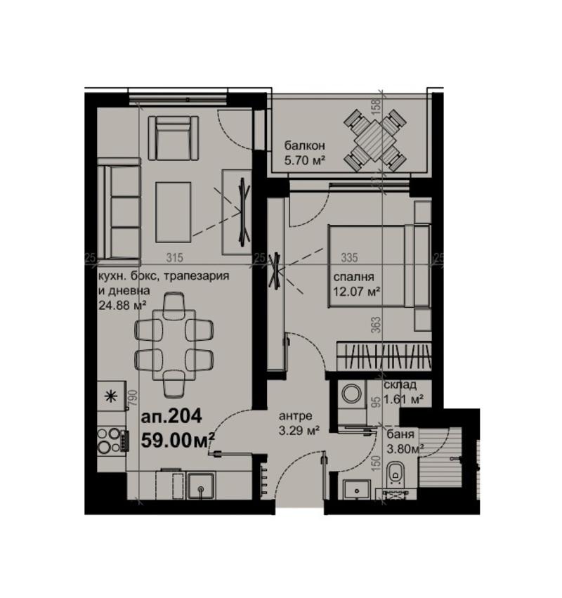 (1 941 €/м2) (3 796,13 лв./м2)Площ: 35.55 м2 Партер