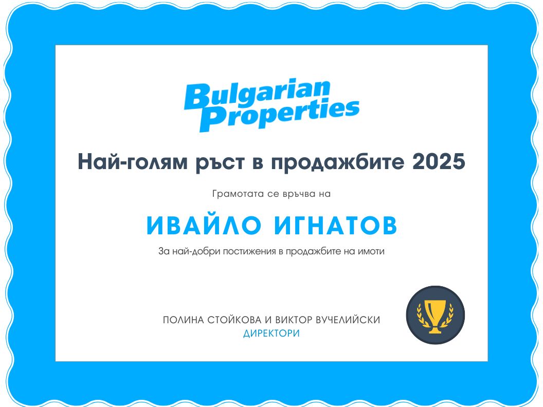 В резултат на своята отдаденост, професионален подход и постоянство, Ивайло постига значими успехи още в първата година от кариерата си в недвижимите имоти, като печели фирмени отличия: