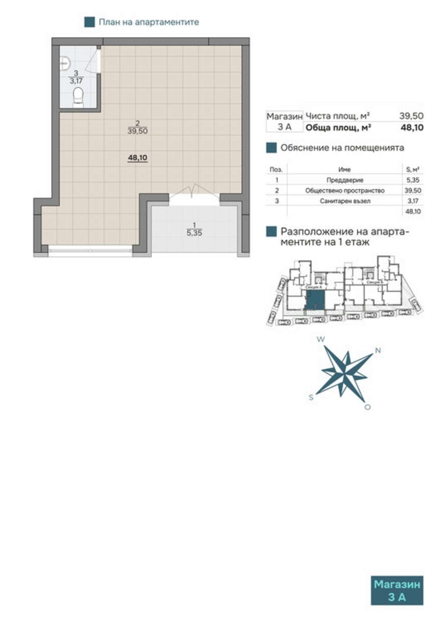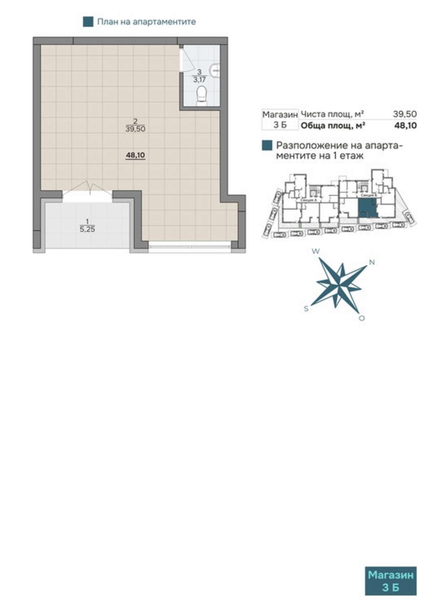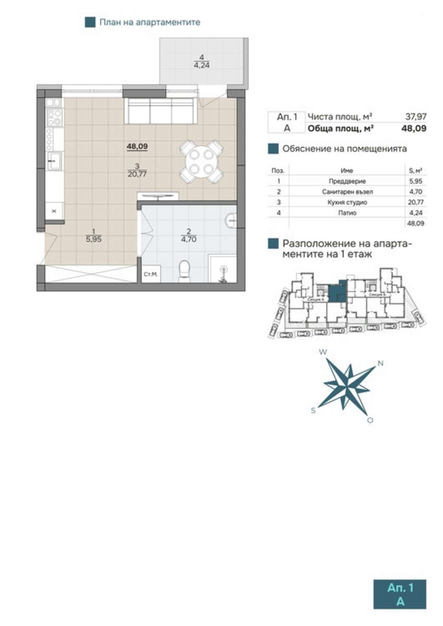 (1 849 €/м2) (3 616,33 лв./м2)Площ: 48.09 м2 Етаж: 1