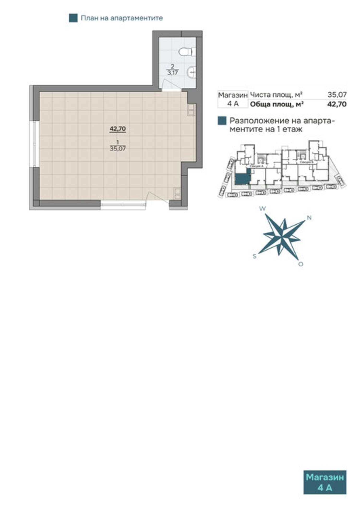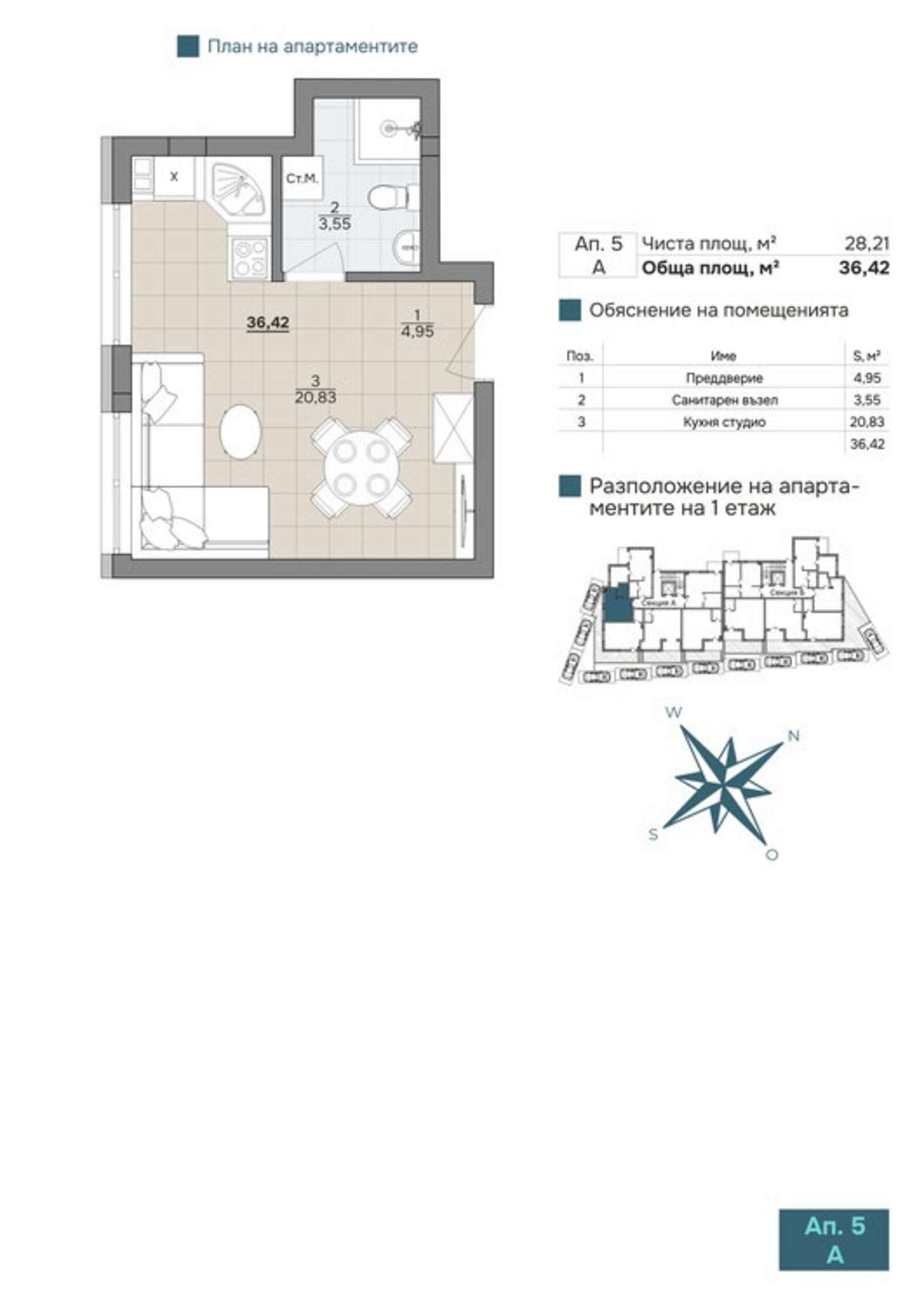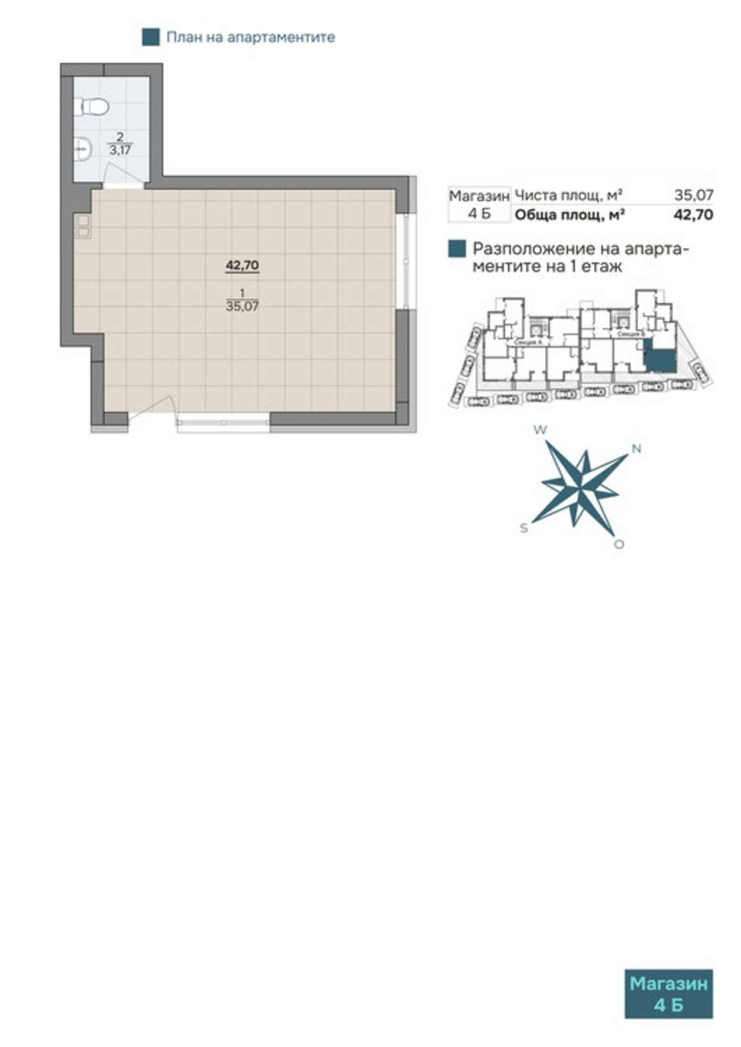 (1 850 €/м2) (3 618,29 лв./м2)Площ: 36.42 м2 Етаж: 1