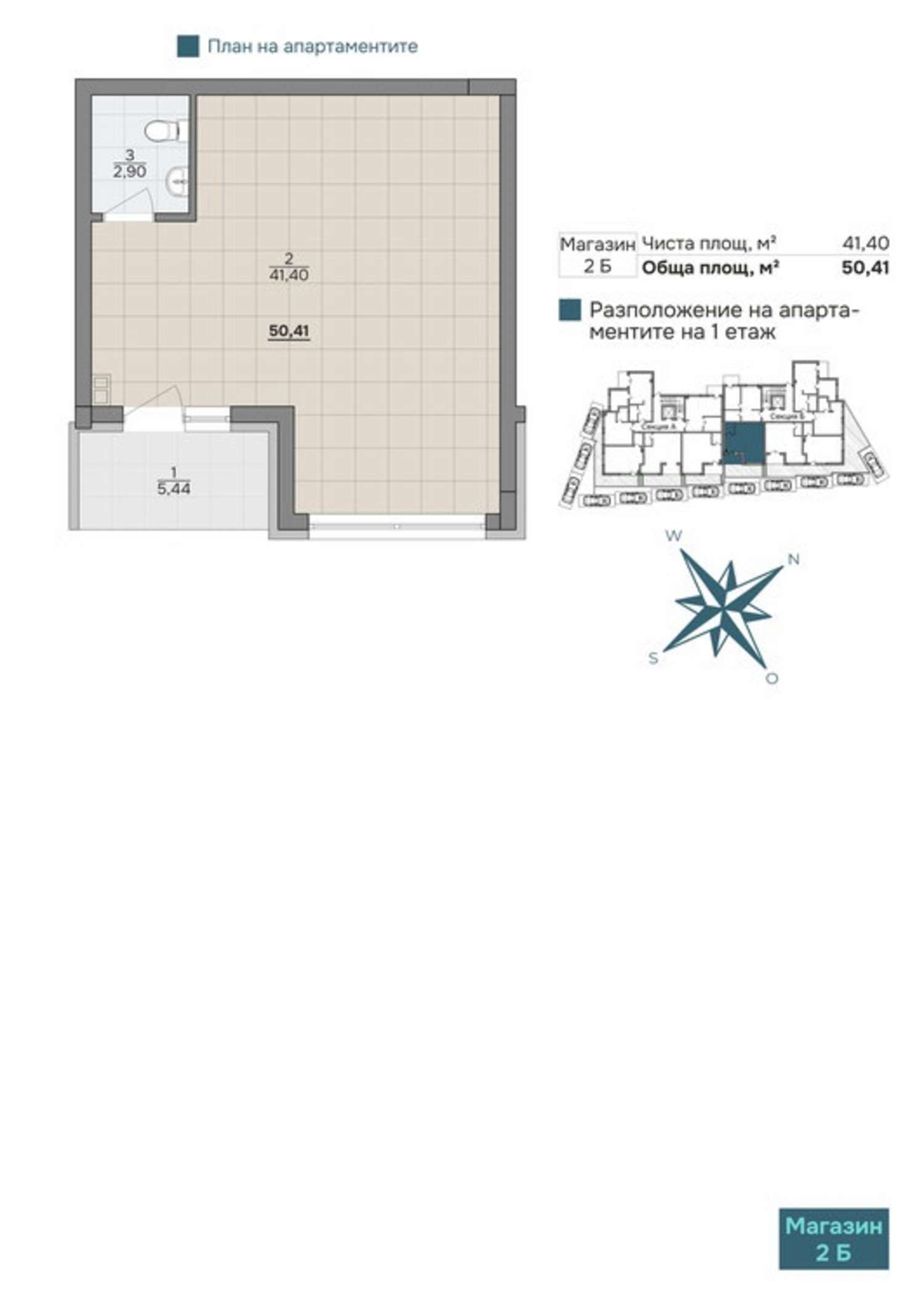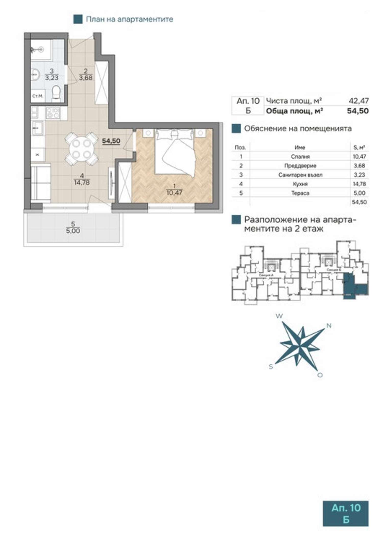 (1 733 €/м2) (3 389,45 лв./м2)Площ: 44.55 м2 Етаж: 2