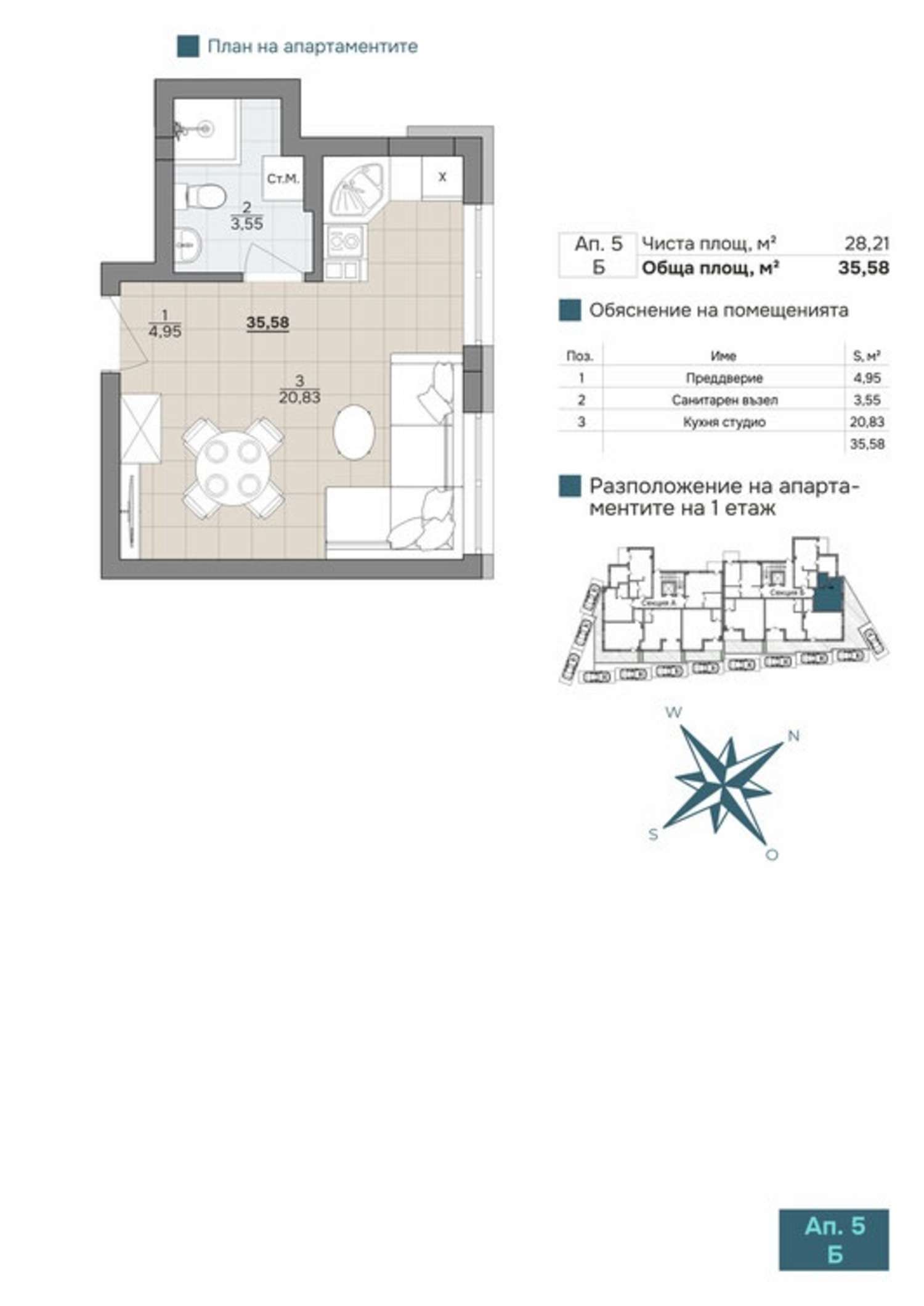 (1 850 €/м2) (3 618,29 лв./м2)Площ: 35.58 м2 Етаж: 1