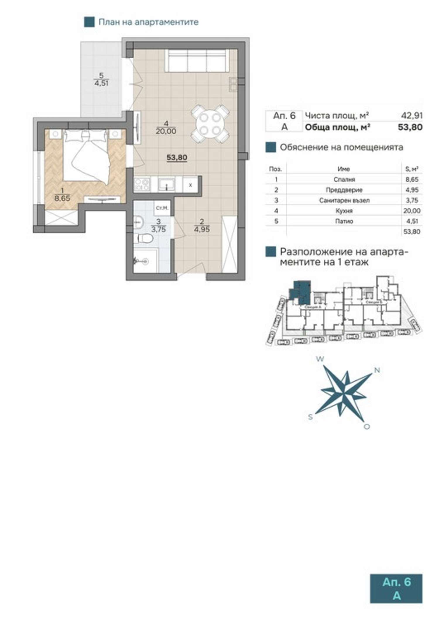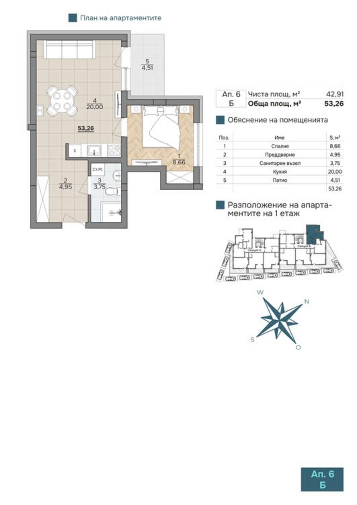 (1 850 €/м2) (3 618,29 лв./м2)Площ: 53.26 м2 Етаж: 1