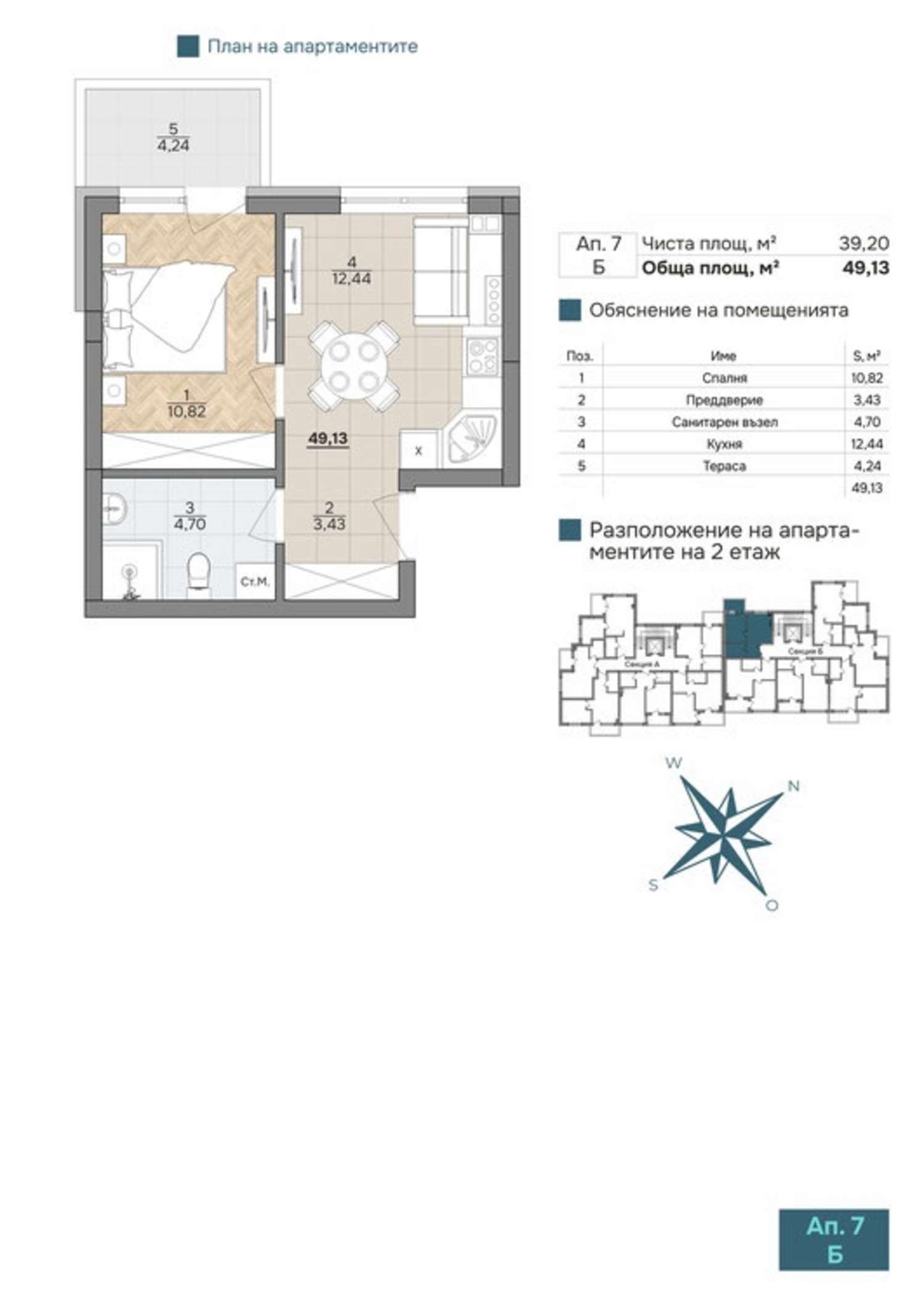 (1 785 €/м2) (3 491,16 лв./м2)Площ: 49.13 м2 Етаж: 2