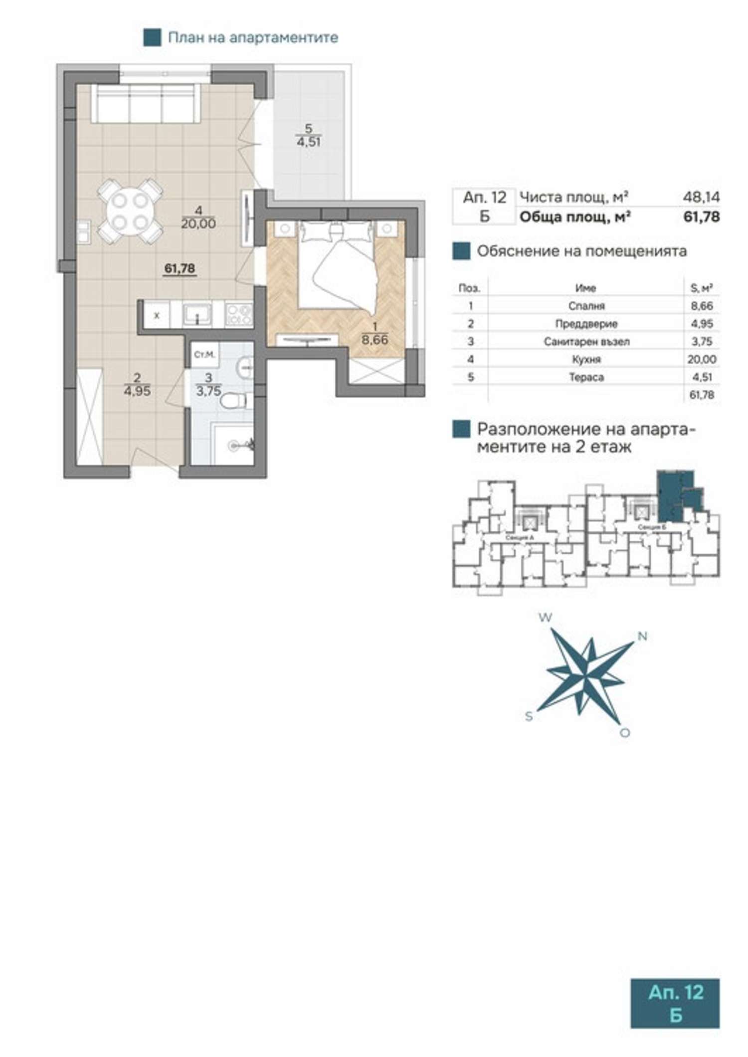(1 750 €/м2) (3 422,70 лв./м2)Площ: 61.78 м2 Етаж: 2