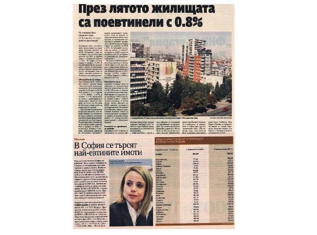 коментира Полина Стойкова. Тя е изчислила, че продажбите в София през третото тримесечие имат 19% годишен спад. „Това може да бъде тълкувано като сигнал за отслабване на пазара",коментира Стойкова. Във Варна обемите се задържат на нивата от същия период на миналата година, а в Бургас и Пловдив има ръст, съответно 8,5 и 12%.