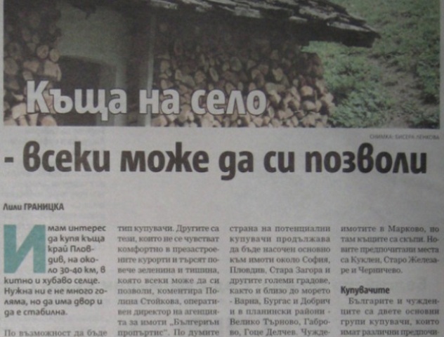 Това е една от множеството обяви, които все по-често могат да се видят в интернет. Вече не само чужденците са разбрали предимствата на хубавата селска къща, но и българите, които сега са основният купувач на позамрелия пазар. Кризата е на път да спре процеса на масовата миграция от селото към града и да обърне посоката. Причинната се крие в предимствата, които дава селският имот.