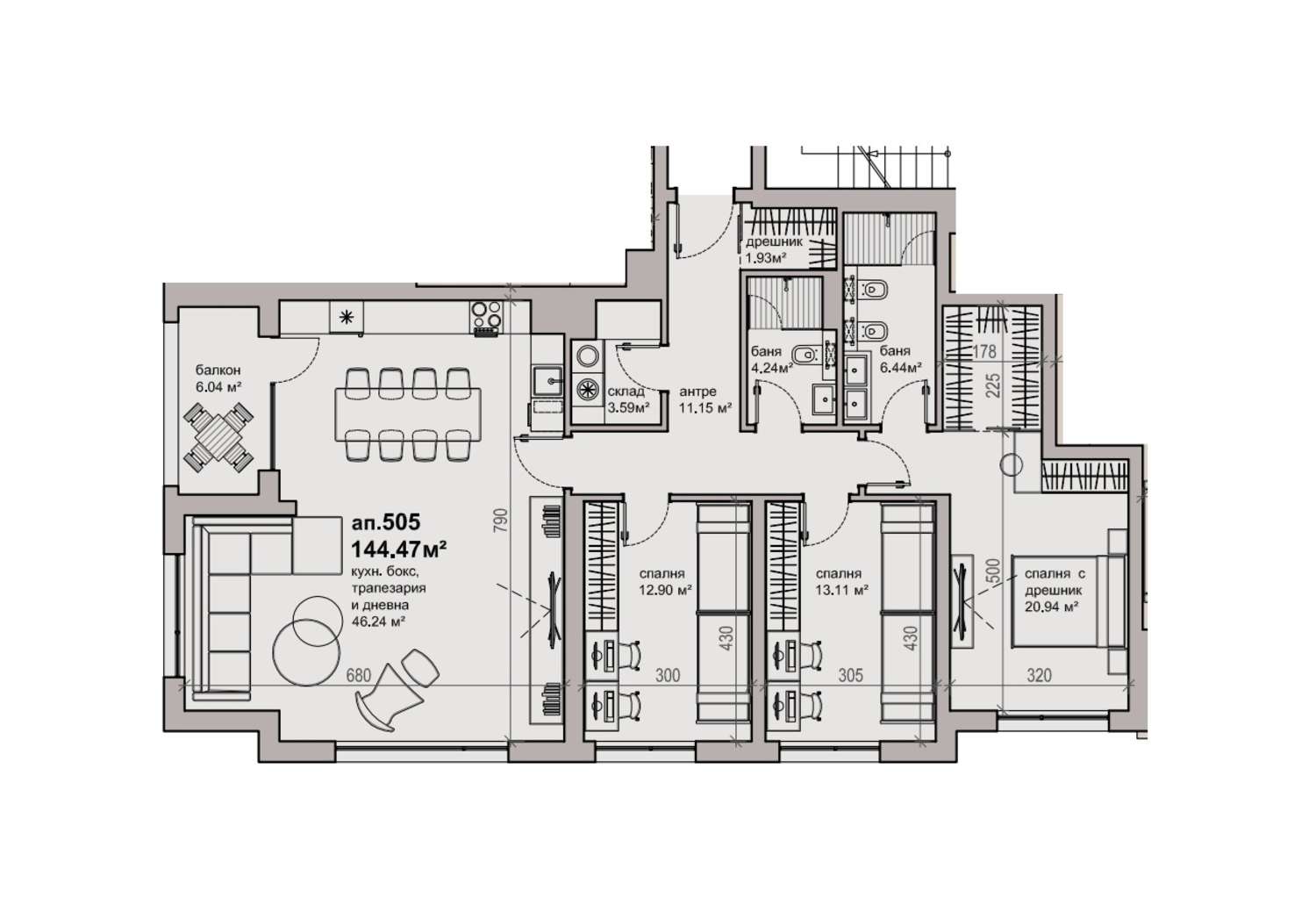(2 617 €/м2) (5 118,41 лв./м2)Площ: 163.89 м2 Етаж: 4